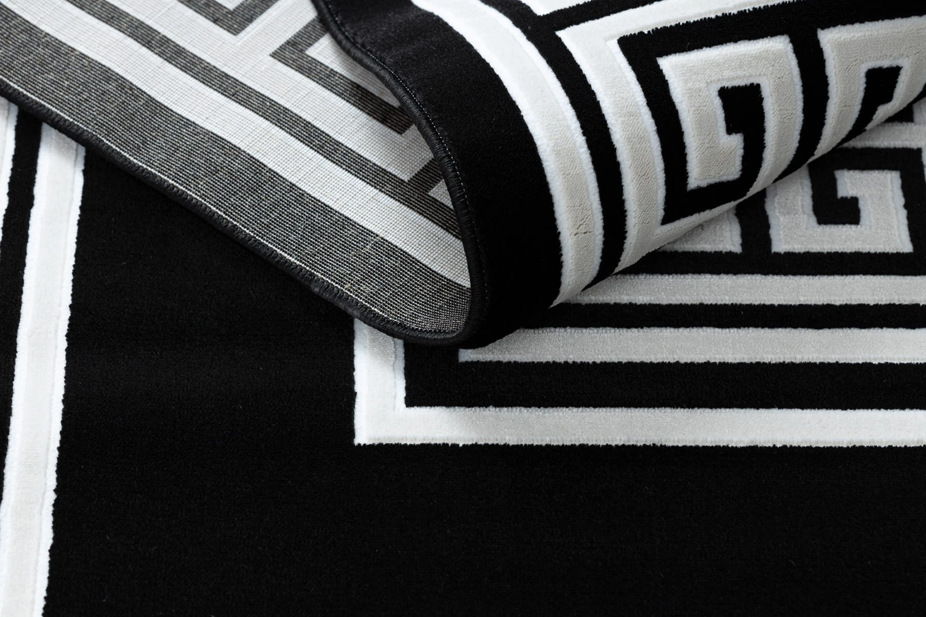 Elegancki dywan z klasyczną ramką w odcieniu kości słoniowej, który wprowadzi do salonu ponadczasowy charakter.