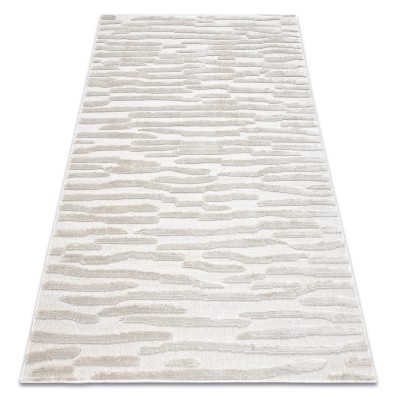 Kremowy dywan z abstrakcyjnym wzorem piór i różowymi akcentami, który doda salonu delikatności i subtelnego charakteru.