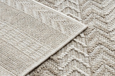 Kremowy dywan z klasycznym wzorem jodełki, który doda wnętrzu subtelnej elegancji i ponadczasowego charakteru.