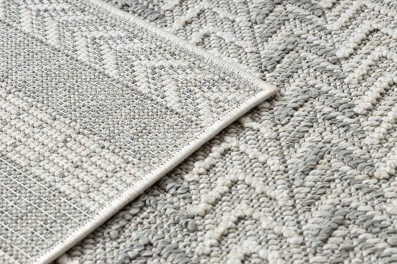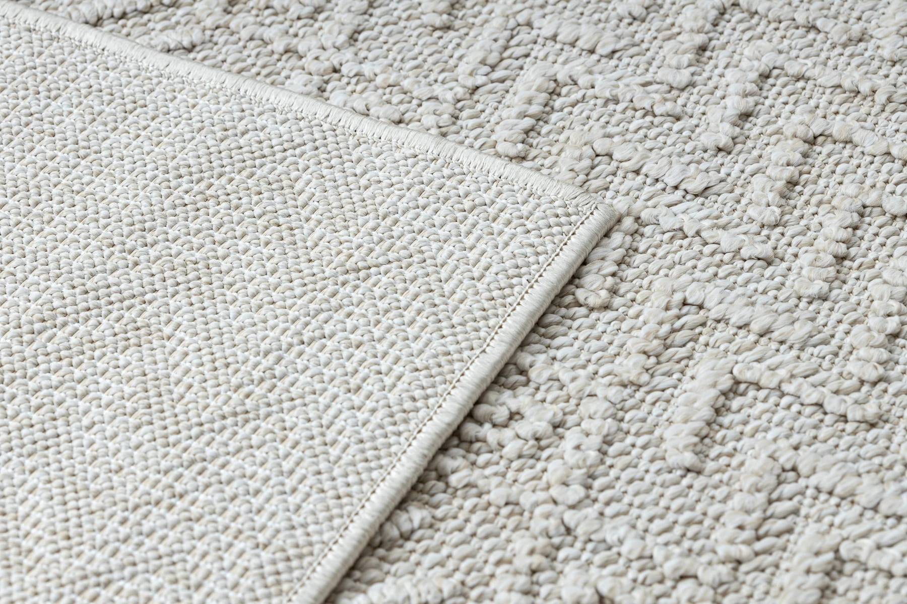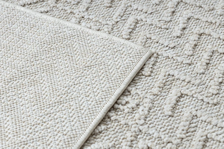 Kremowy dywan z wzorem jodełki, który nada korytarzowi klasyczny charakter i optycznie go wydłuży.