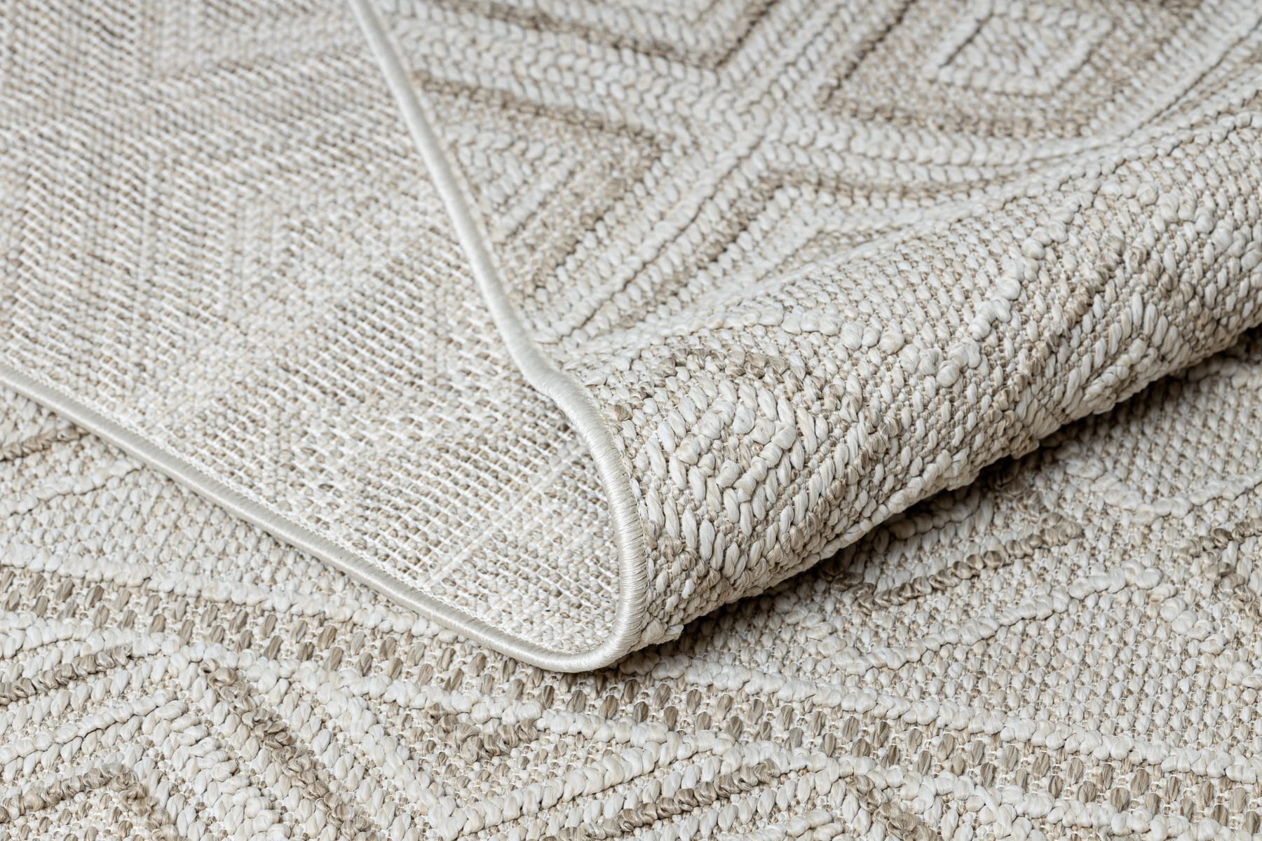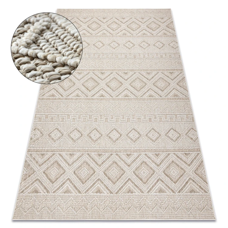 Beżowy dywan z geometrycznym wzorem rombów, który doda wnętrzu subtelnej elegancji i ciepłego charakteru.