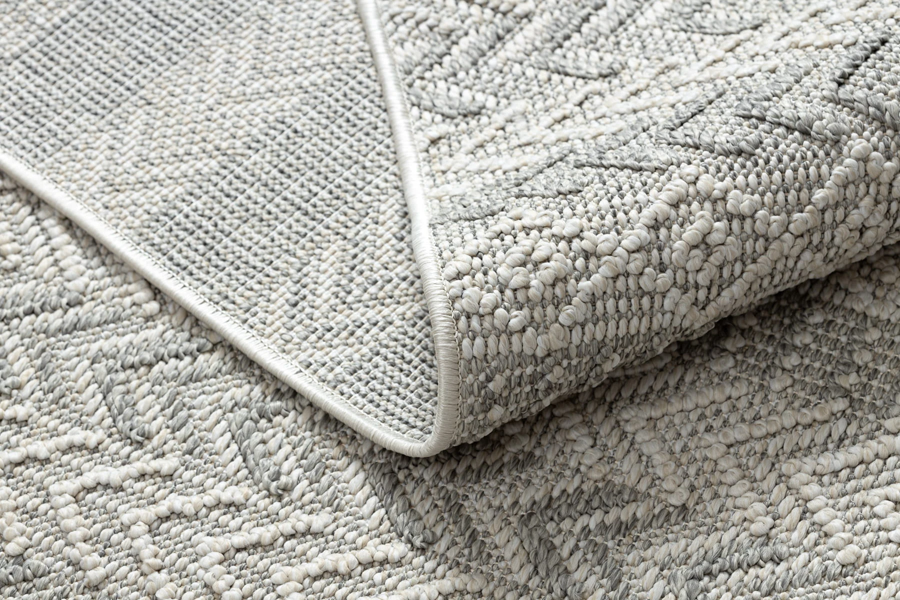 Szary dywan z abstrakcyjnym wzorem jodełki, który doda salonowi elegancki charakter i podkreśli nowoczesny styl wnętrza.