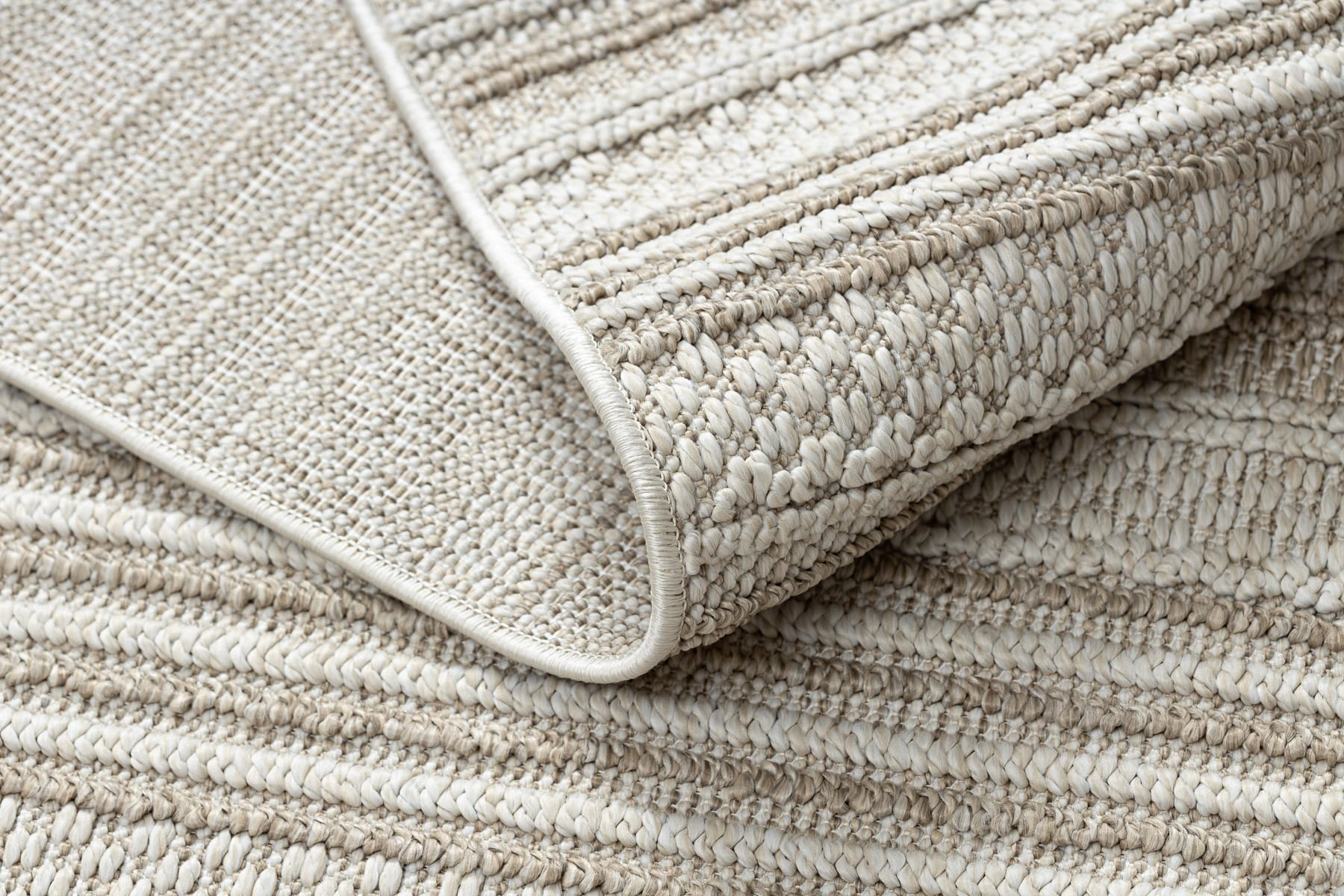 Beżowy dywan z abstrakcyjnym wzorem linii, który subtelnie wypełni korytarz ciepłym, naturalnym akcentem.