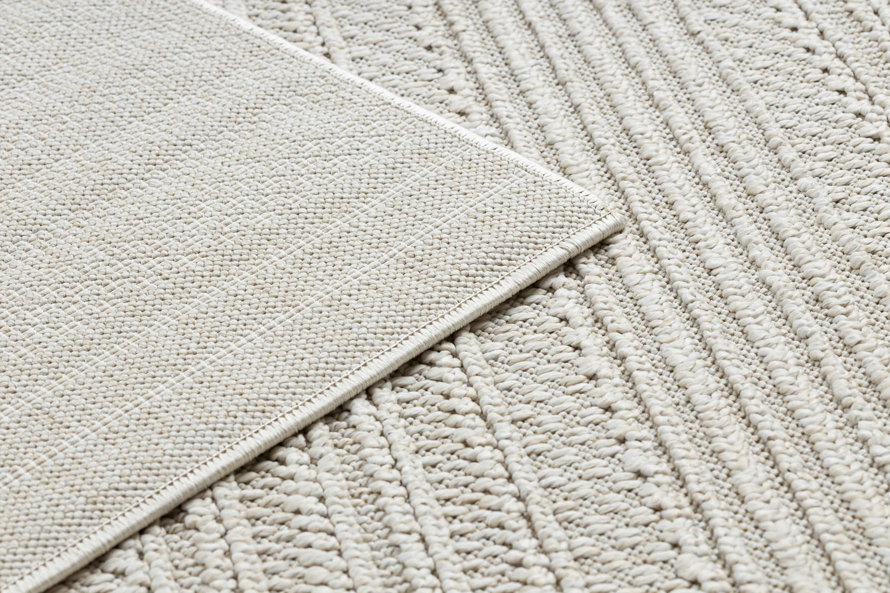 Kremowy dywan z abstrakcyjnym wzorem linii, który doskonale wpisze się w nowoczesny salon lub pokój.