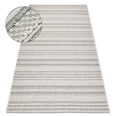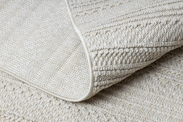 Dywan w odcieniu kremu, odporny na warunki atmosferyczne, idealny na taras i balkon.