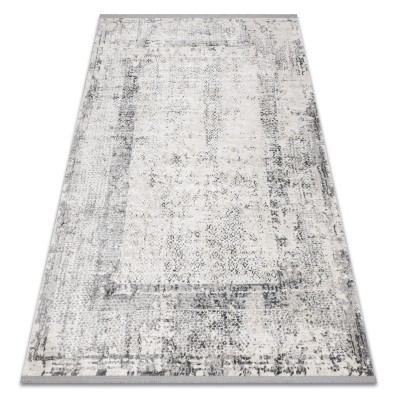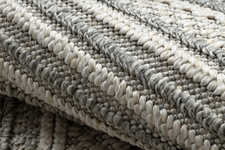 Szary dywan z abstrakcyjnym wzorem linii, który doskonale wpisze się w nowoczesny salon lub pokój.