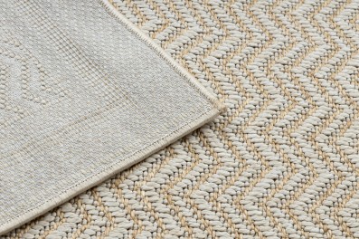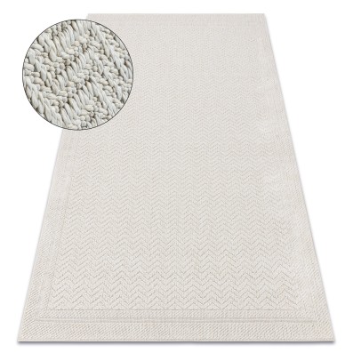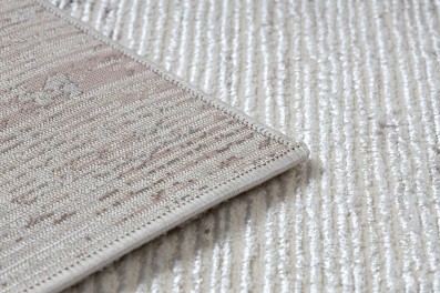 Beżowy dywan z delikatną ramką, który wprowadzi do salonu lub pokoju stonowaną elegancję i ciepły charakter.