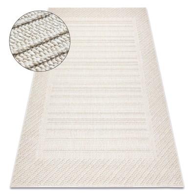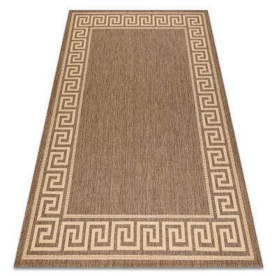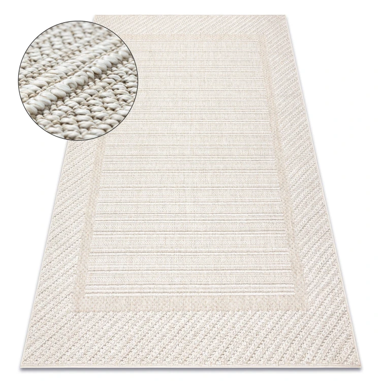Beżowy dywan z motywem ramki, który elegancko podkreśli korytarz w klasycznym stylu.
