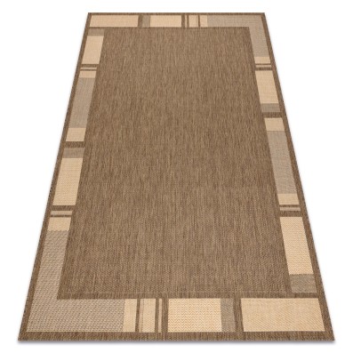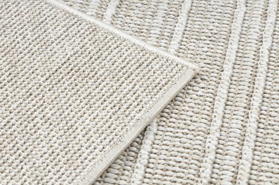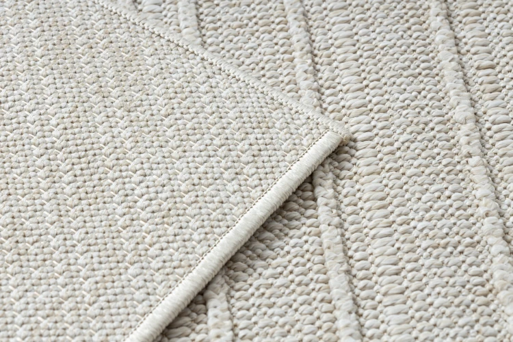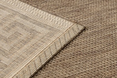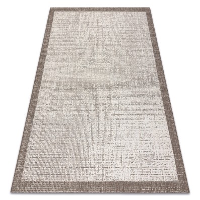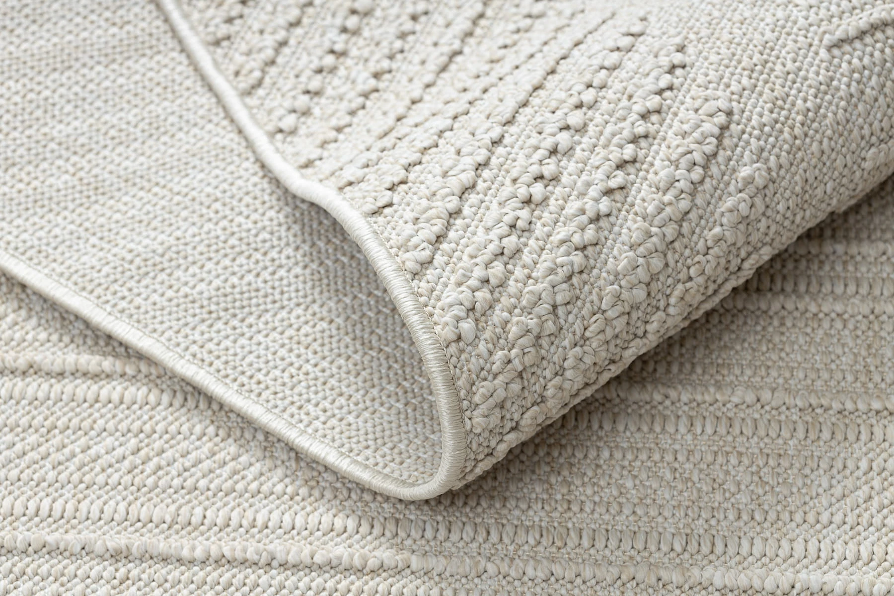 Kremowy dywan z subtelną ramką, który doskonale sprawdzi się w salonie, dodając wnętrzu eleganckiej prostoty.