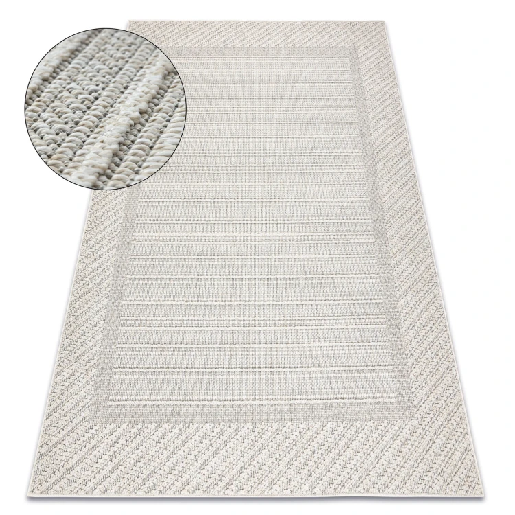Szary dywan z delikatną ramką, który elegancko uzupełni korytarz i nada mu uporządkowany charakter.