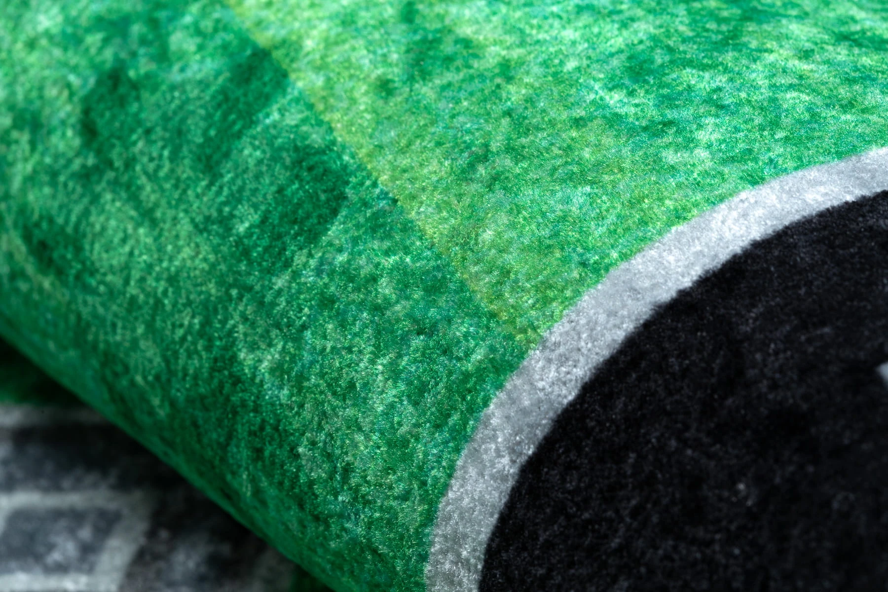 Zielony dywan z motywem miasta, który ożywi pokój dziecka i stworzy przestrzeń do zabawy.