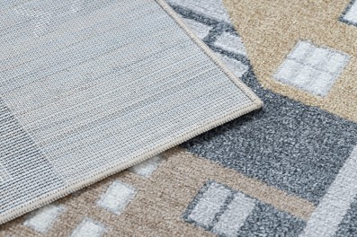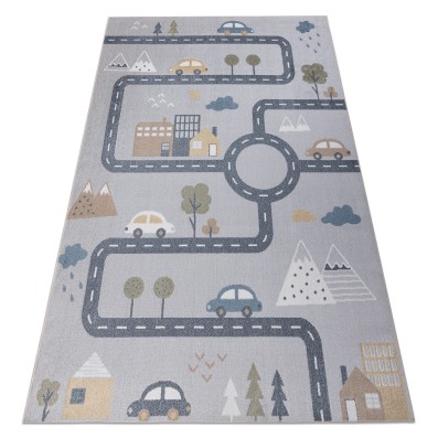 Szary dywan z motywem torów, który stworzy idealną przestrzeń do zabawy samochodzikami i zachęci do aktywnej rozrywki.