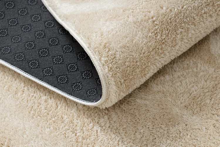 Beżowy dywan shaggy z runem 20 mm, który wprowadzi do salonu lub pokoju przytulną atmosferę w neutralnych odcieniach.