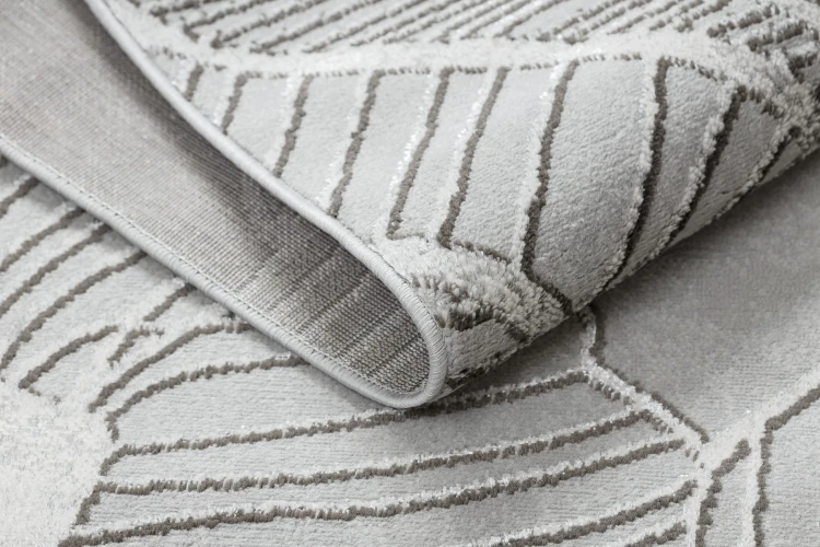 Szary dywan z delikatnym roślinnym wzorem, który wprowadzi do salonu naturalny, spokojny klimat.