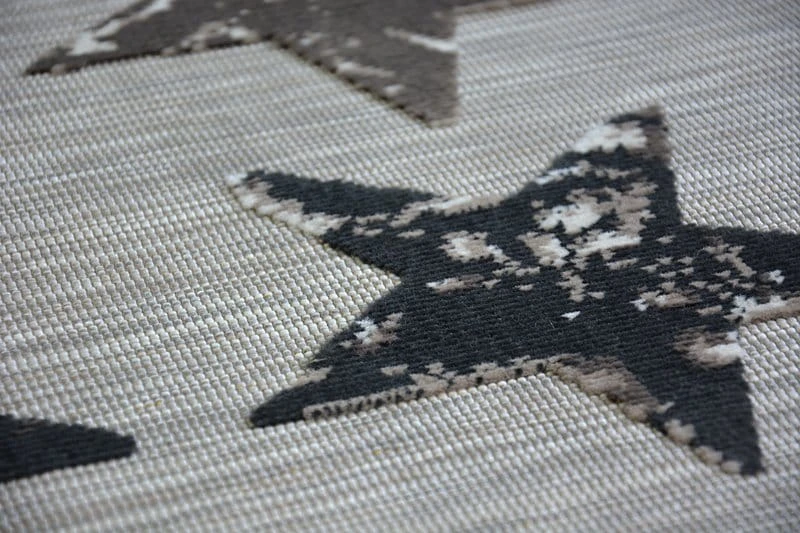 Brązowy dywan z motywem gwiazdek, który ożywi korytarz ciepłym, przytulnym akcentem.