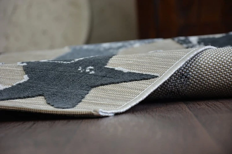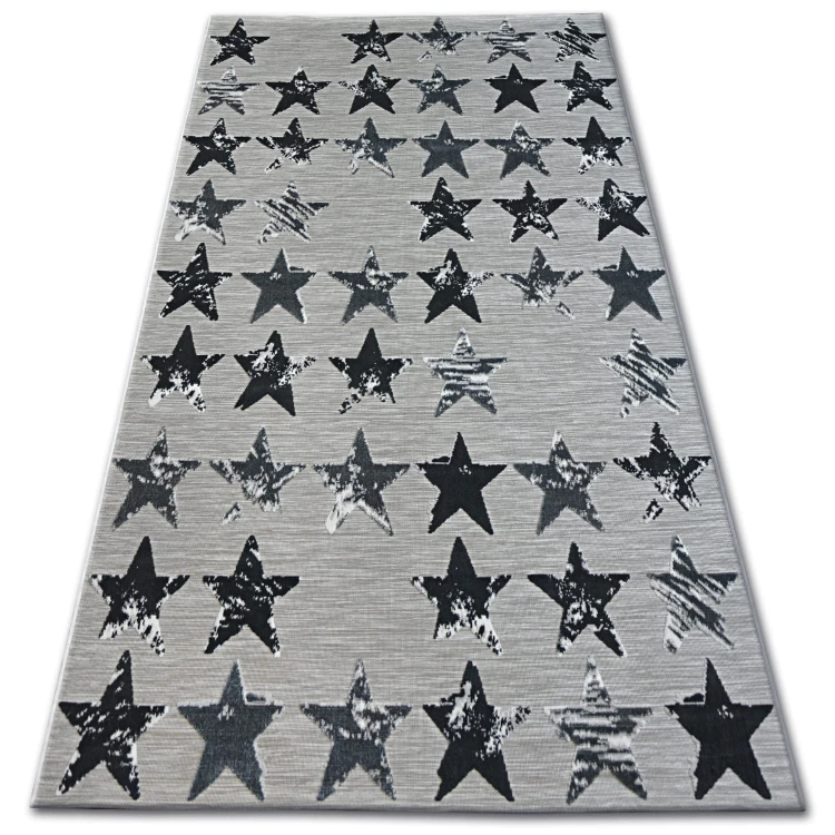 Szary dywan z motywem gwiazdek, który doskonale sprawdzi się w korytarzach i przejściach.