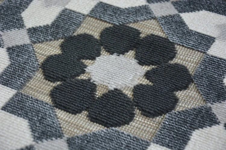 Szary dywan z delikatnym kwiatowym wzorem, który wprowadzi do salonu naturalny akcent w eleganckiej formie.