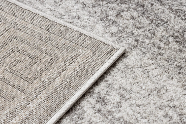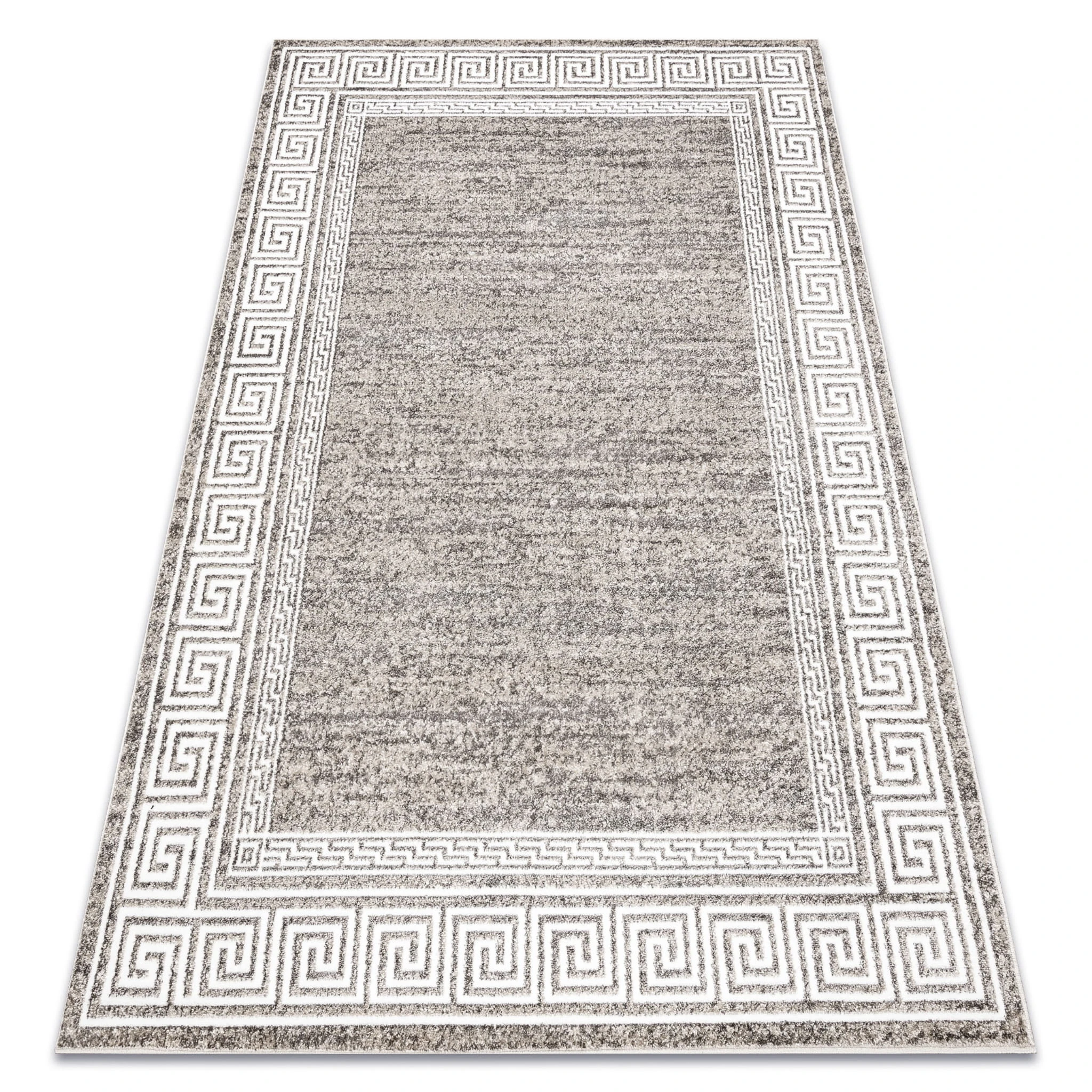 Szary dywan z delikatną ramką, który elegancko wypełni korytarz, nadając mu stonowany charakter.