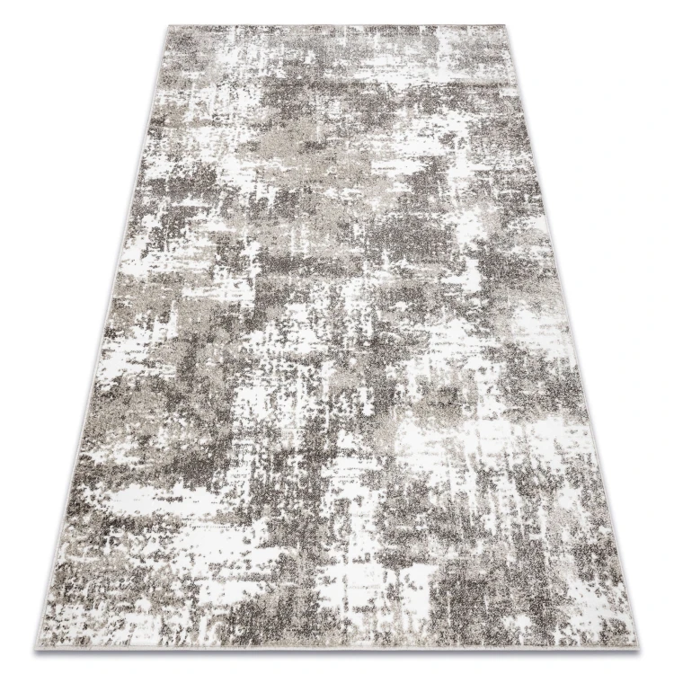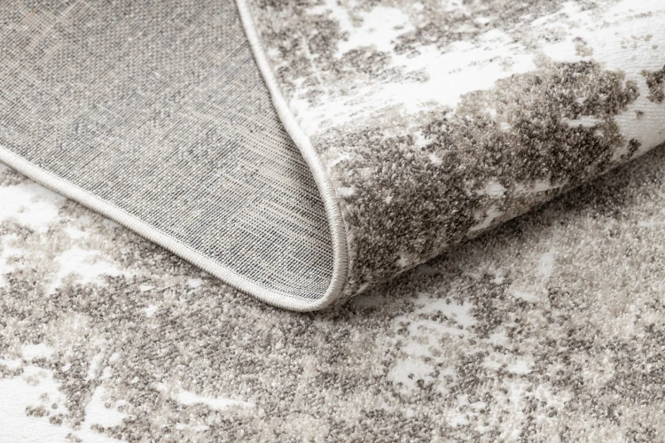 Szary dywan z abstrakcyjnym wzorem, który doskonale sprawdzi się w korytarzu, nadając mu nowoczesny charakter.