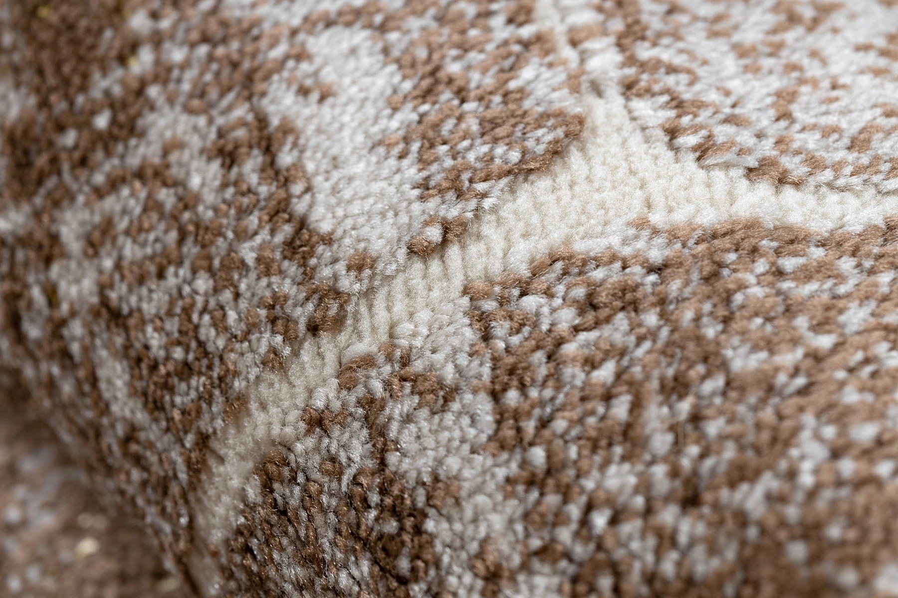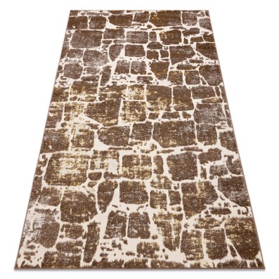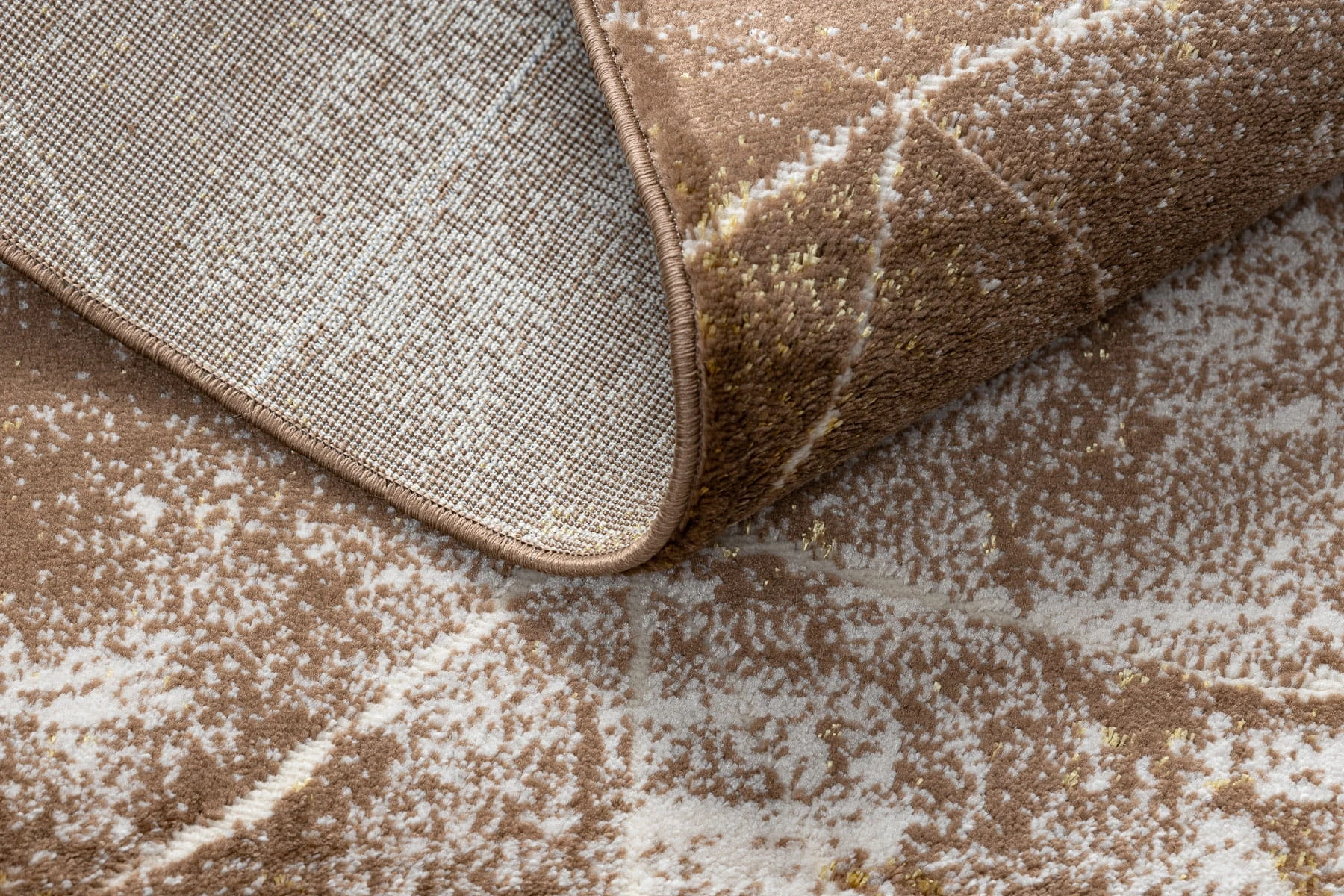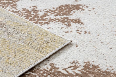 Beżowy dywan z abstrakcyjnym wzorem w stylu marmuru, który wprowadzi do wnętrza elegancką naturalność i ciepło.