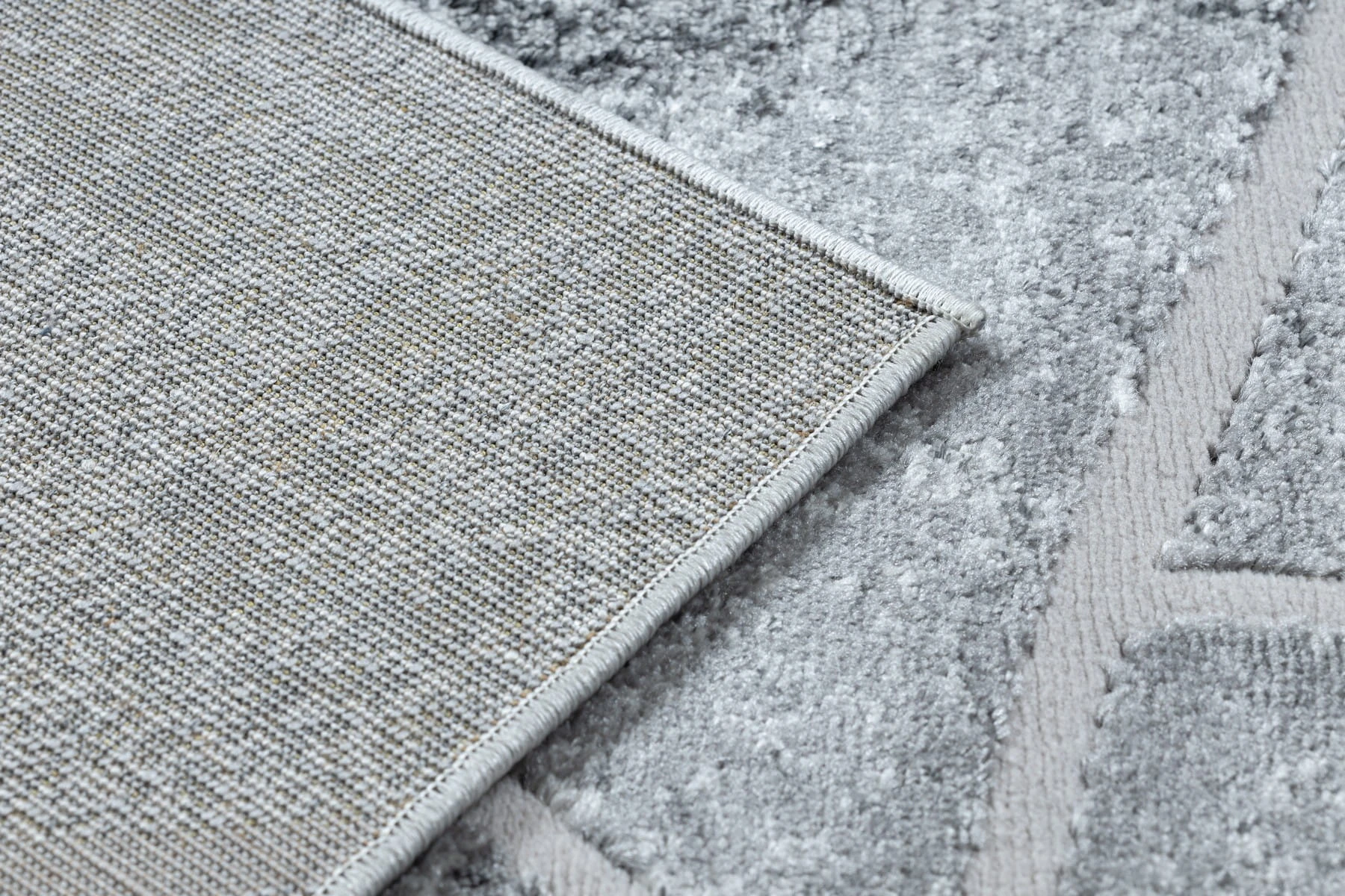 Szary dywan z abstrakcyjnym wzorem marmuru, który doda salonowi nowoczesny, elegancki charakter.