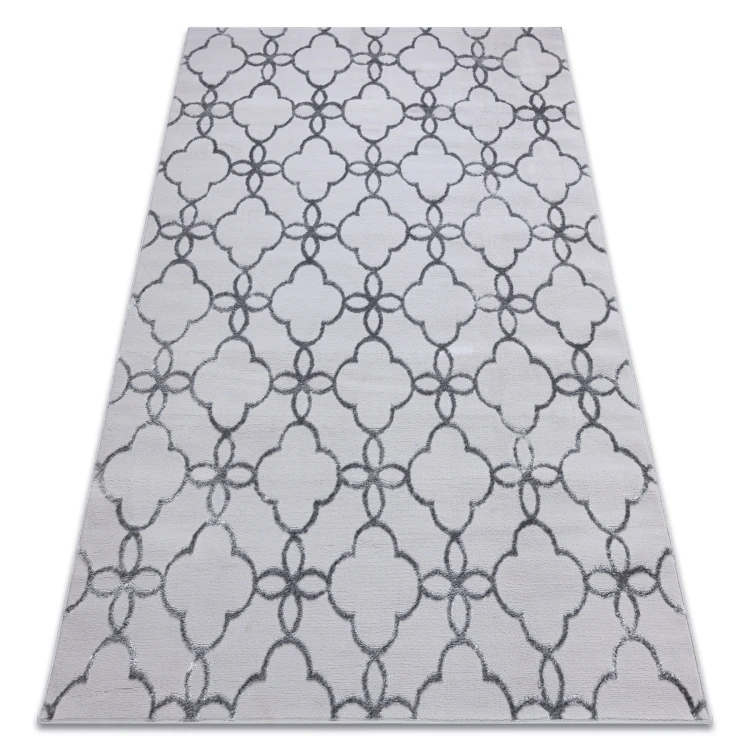 Szary dywan z abstrakcyjnym wzorem, który doda nowoczesnego charakteru salonowi lub pokojowi.