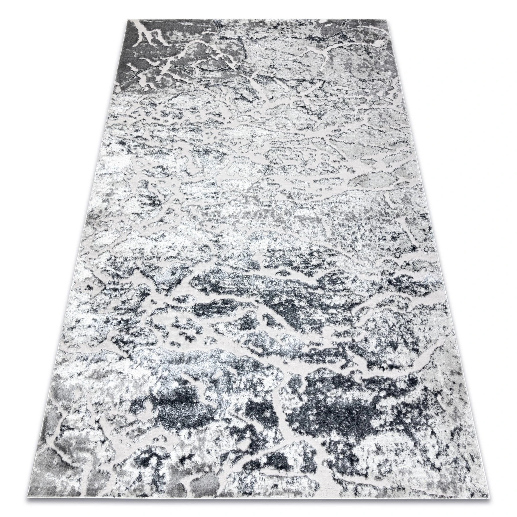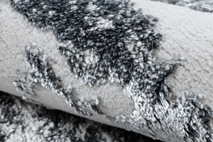 Szary dywan z abstrakcyjnym wzorem, który doskonale wpisze się w nowoczesne wnętrza, dodając im stylowego charakteru.