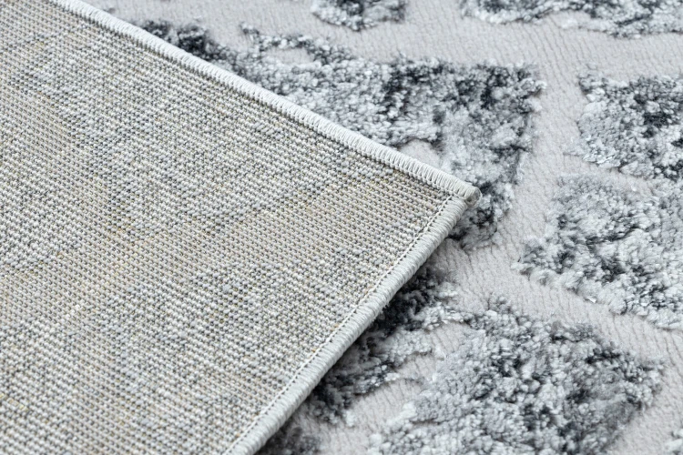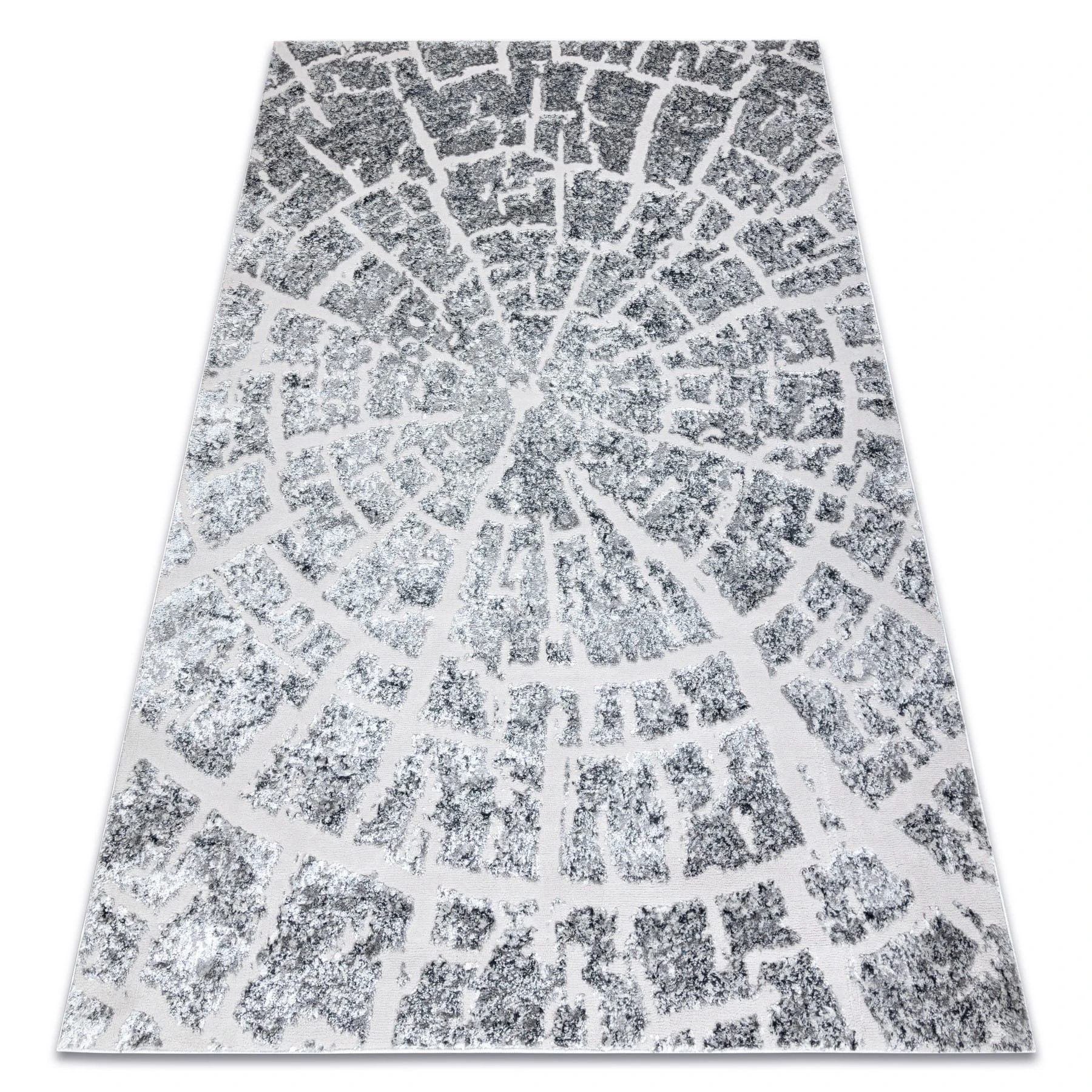 Szary dywan z abstrakcyjnym wzorem, który idealnie sprawdzi się w korytarzu, nadając mu nowoczesny charakter.