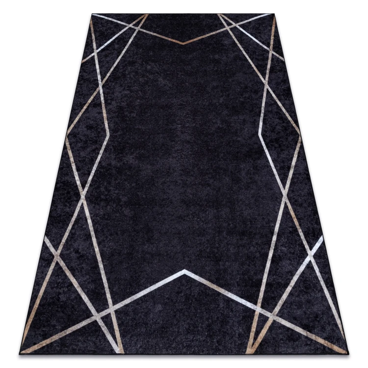 Czarny dywan z geometrycznym wzorem, który doda salonowi elegancki, nowoczesny charakter.
