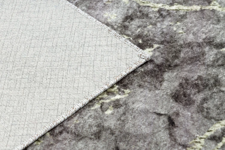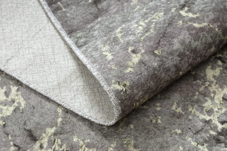Szary dywan z abstrakcyjnym wzorem imitującym marmur, który wprowadzi do salonu lub pokoju nowoczesny, elegancki akcent.