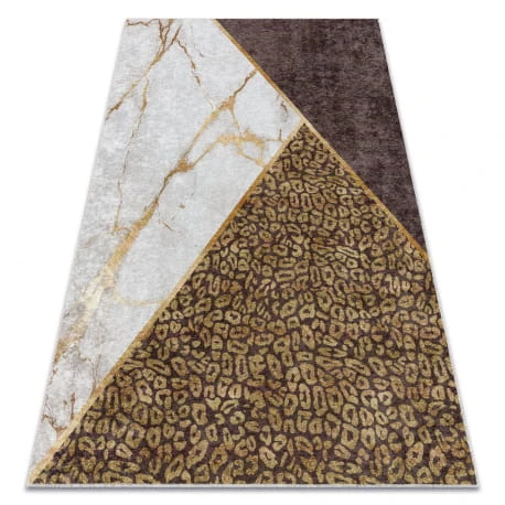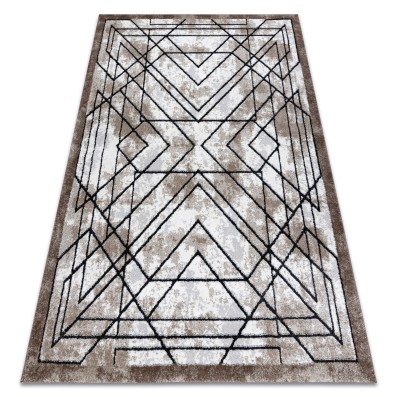Brązowy dywan z geometrycznym wzorem, który wprowadzi do salonu ciepły, nowoczesny akcent.