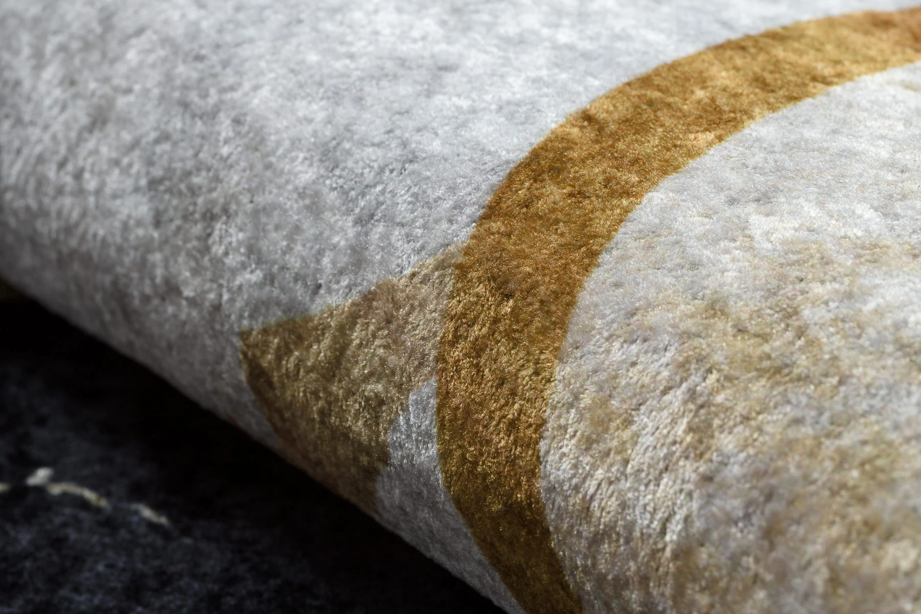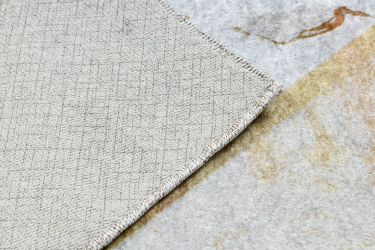 Złoty dywan z abstrakcyjnym wzorem marmuru, który wniesie do wnętrza ciepły, luksusowy akcent.