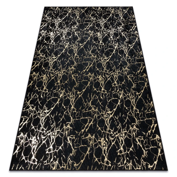 Czarno-złoty dywan z abstrakcyjnym wzorem marmurkowym, który doda salonowi elegancki, nowoczesny charakter.