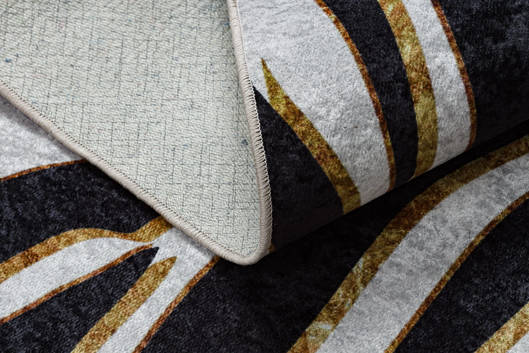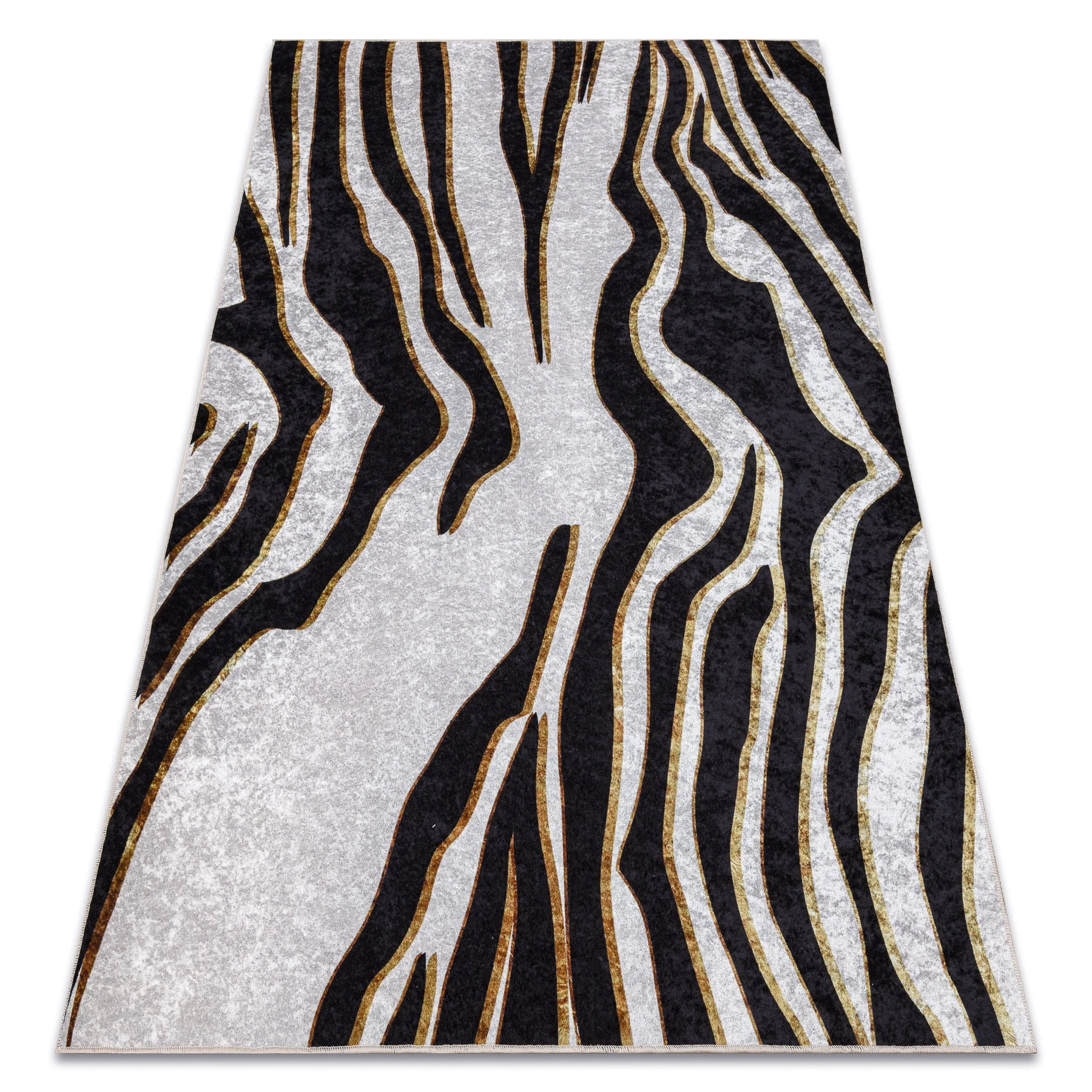 Kremowo-czarny dywan ze zwierzęcym wzorem zebry, który doda wnętrzu charakteru i stanie się efektownym akcentem w salonie.