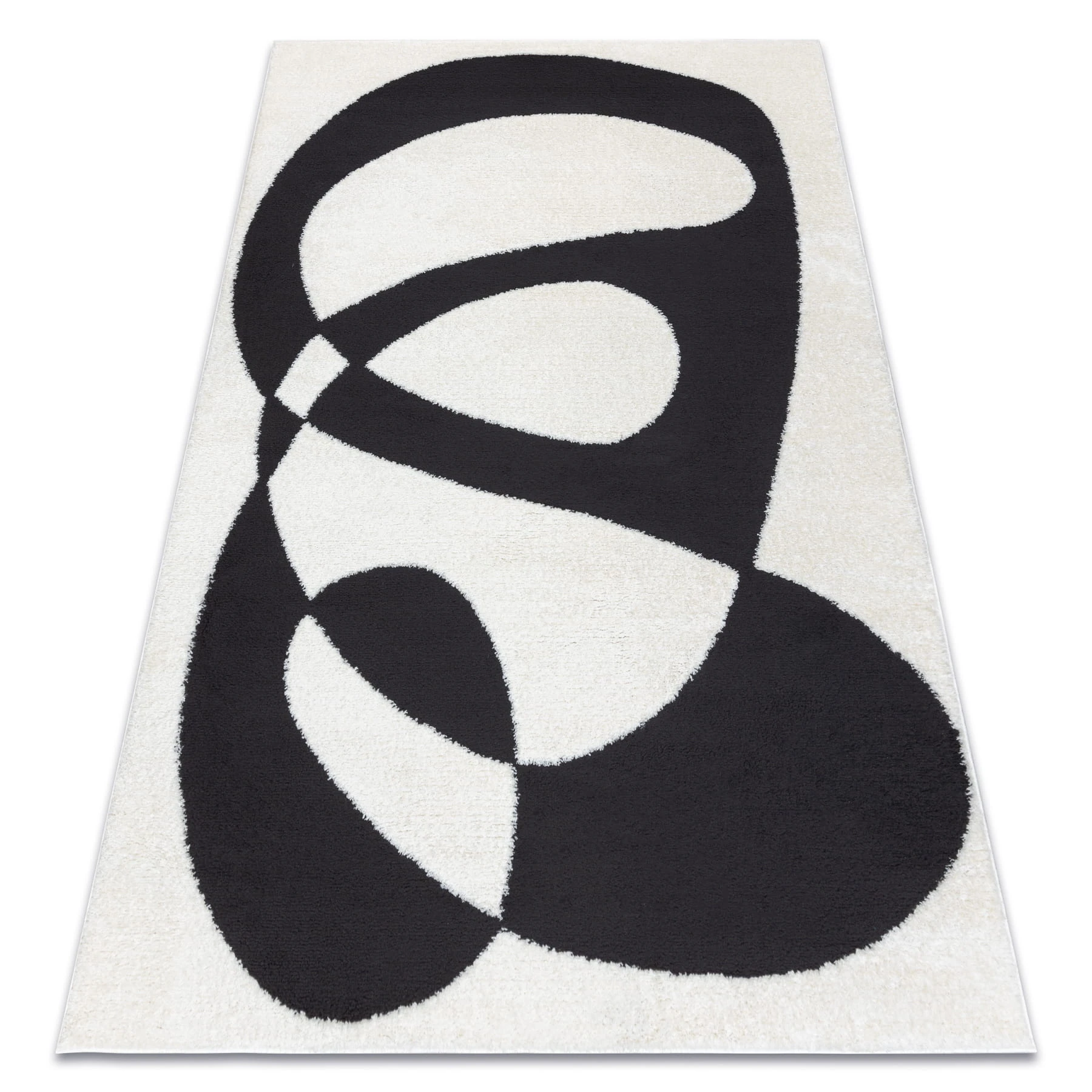 Kremowo-czarny dywan z abstrakcyjnym wzorem, który doskonale wpisze się w nowoczesny salon.