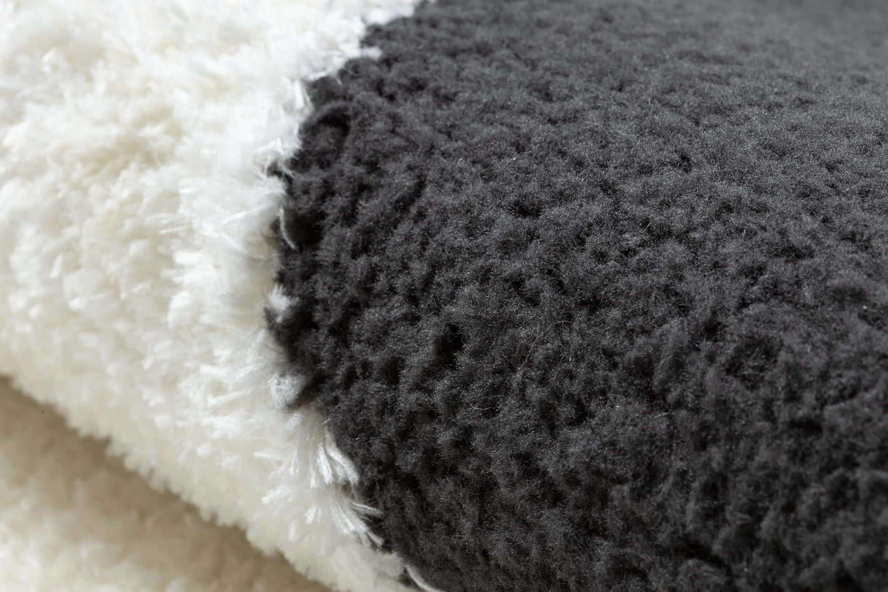 Kremowo-czarny dywan z abstrakcyjnym wzorem, który doskonale wpisze się w nowoczesny salon.