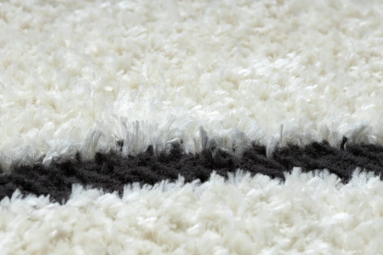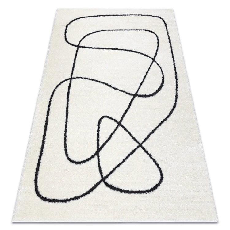 Kremowo-czarny dywan z abstrakcyjnym wzorem, który doskonale wpisze się w nowoczesny salon.
