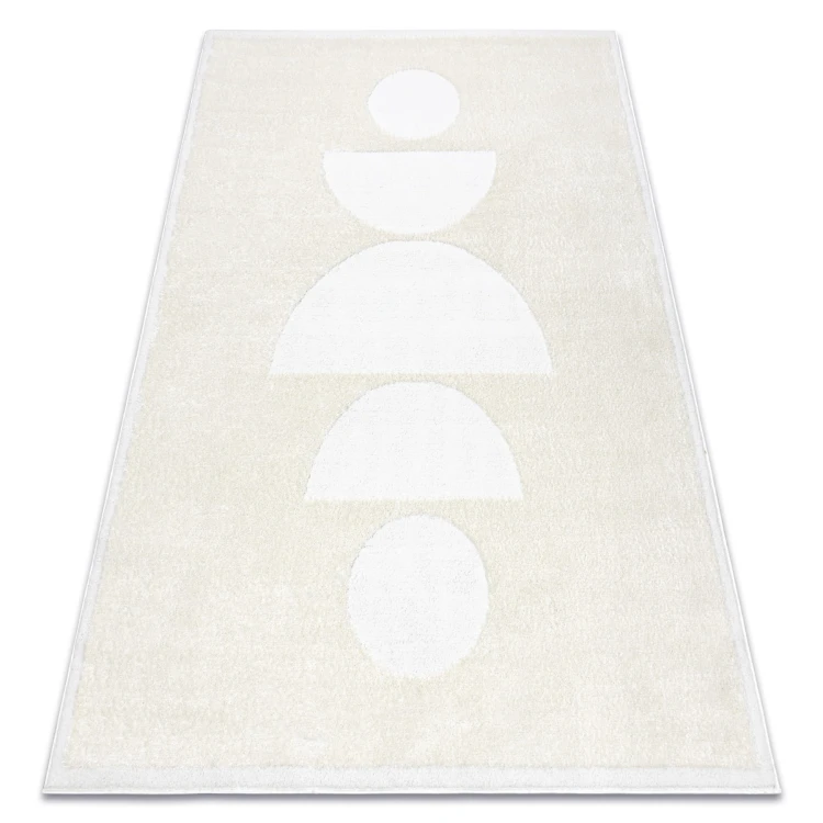 Kremowy dywan z geometrycznym wzorem, który doskonale wpisze się w nowoczesny salon lub pokój.