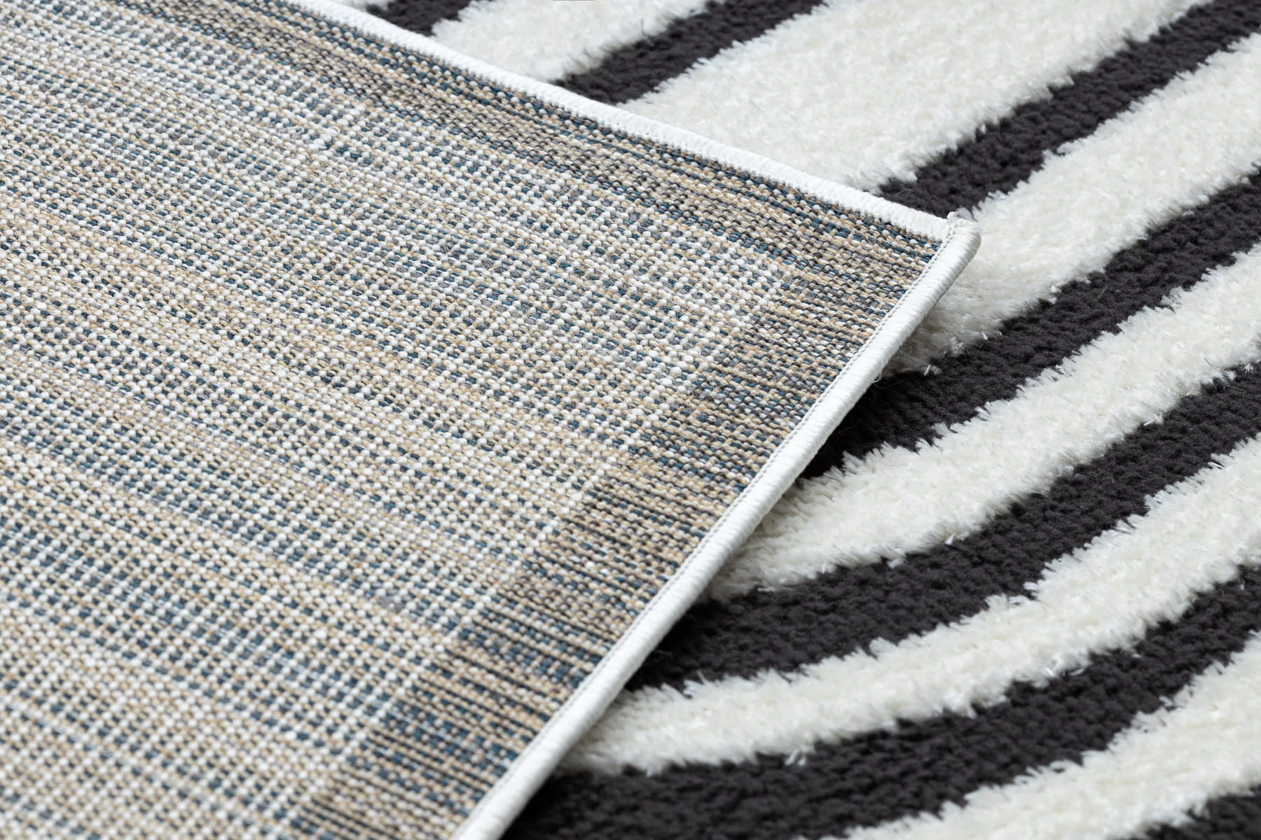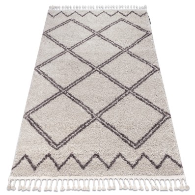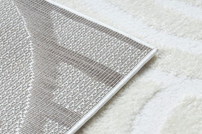 Kremowo-czarny dywan z geometrycznym wzorem, który doskonale wpisze się w nowoczesny salon.