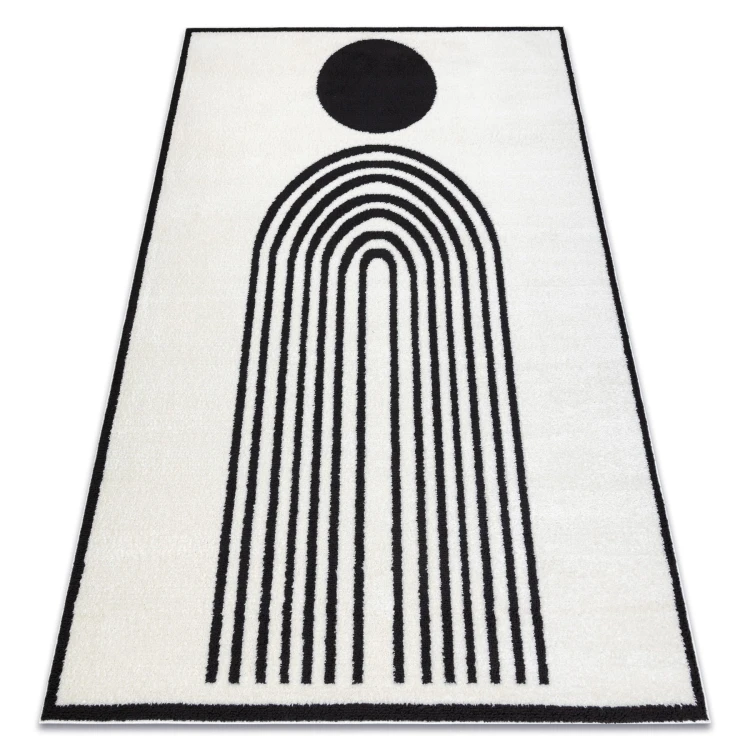 Kremowo-czarny dywan z geometrycznym wzorem, który doskonale wpisze się w nowoczesny salon.