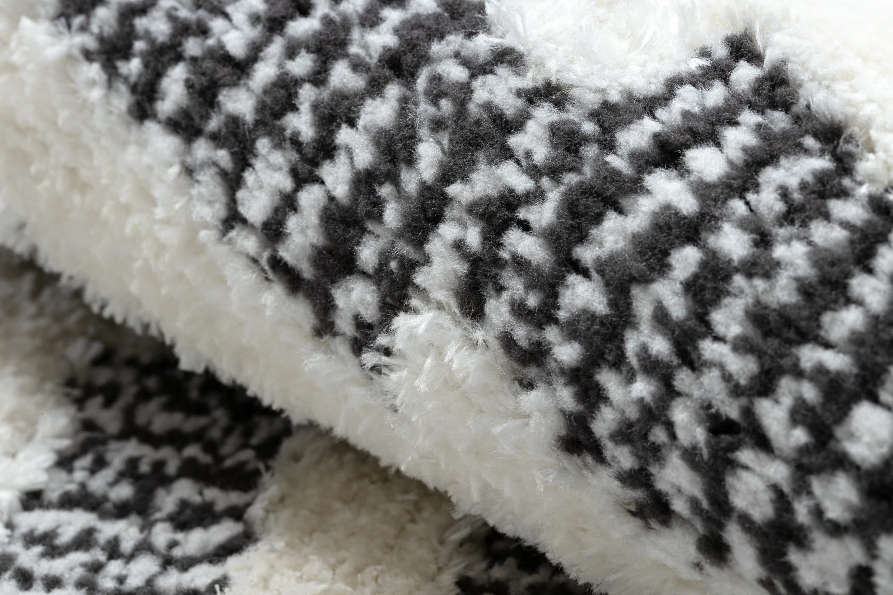 Kremowo-czarny dywan z abstrakcyjnym wzorem, który doskonale wpisze się w nowoczesny salon lub pokój.