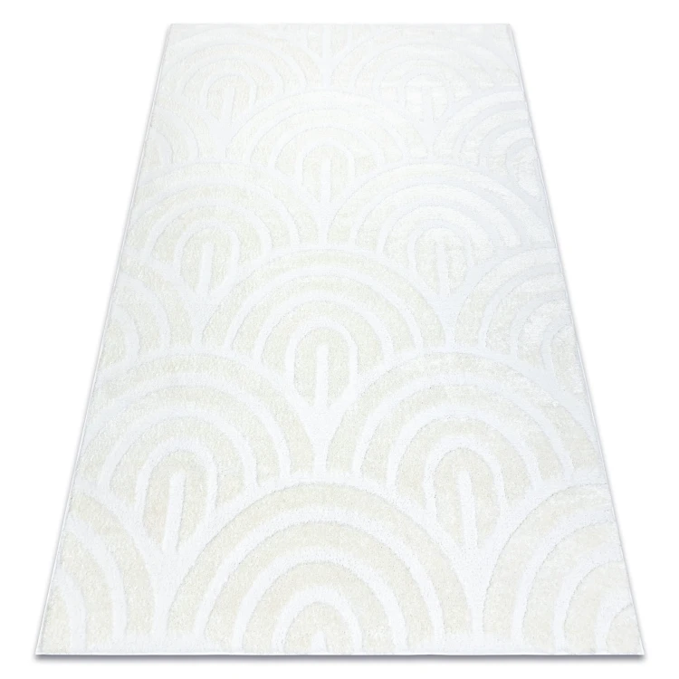 Kremowy dywan z geometrycznym wzorem muszli, który wprowadzi do salonu subtelną elegancję i naturalny charakter.
