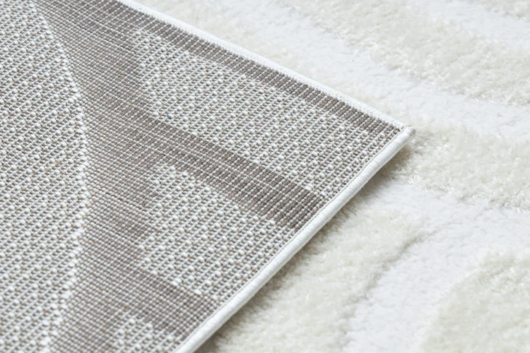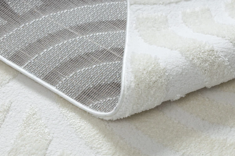 Kremowy dywan z geometrycznym wzorem muszli, który wprowadzi do salonu subtelną elegancję i naturalny charakter.