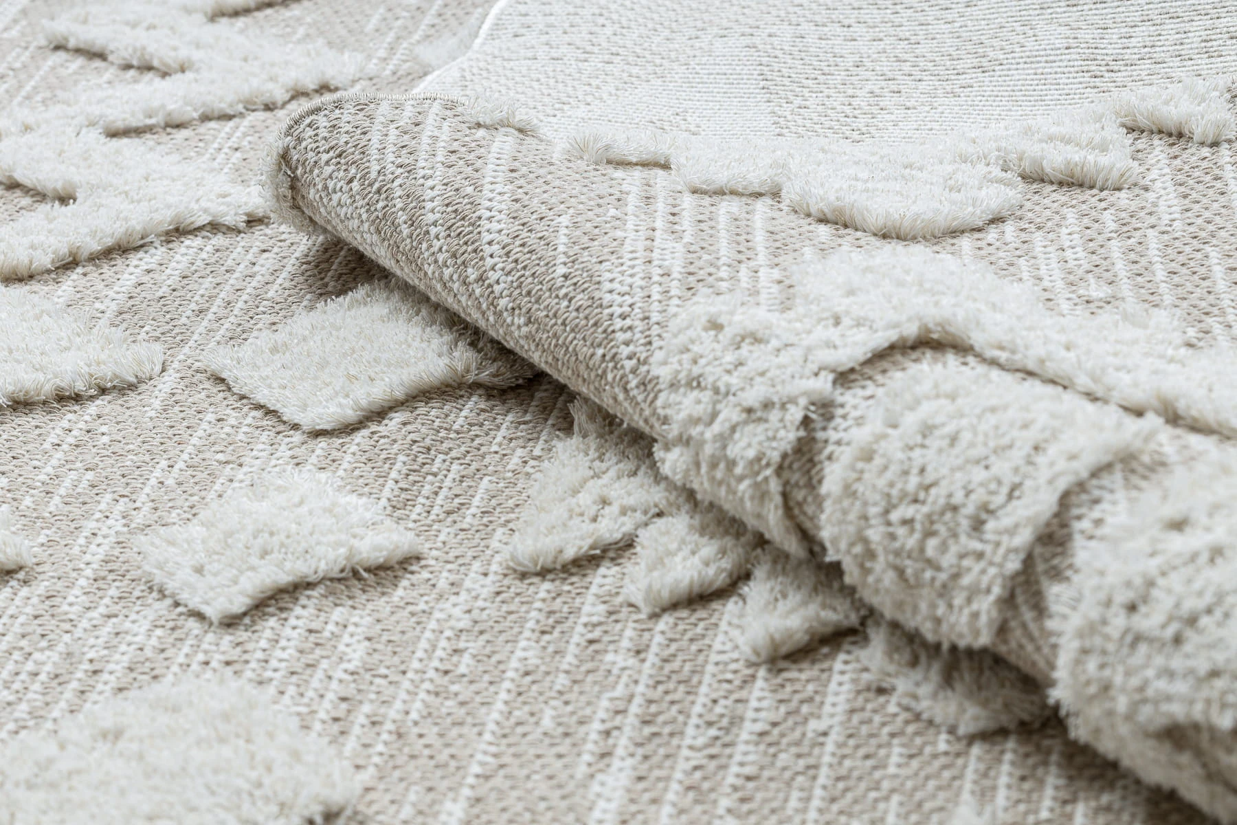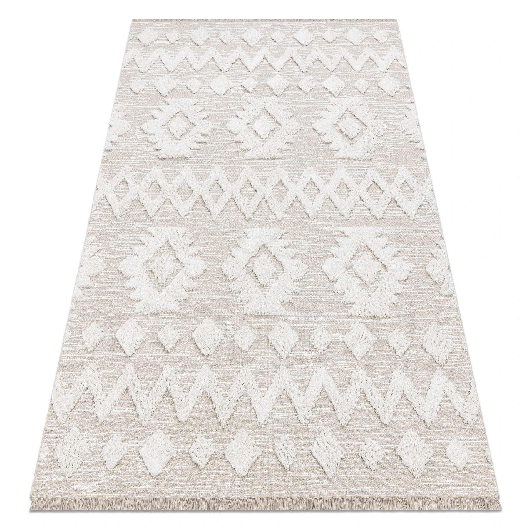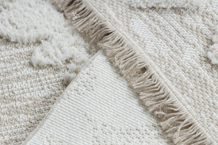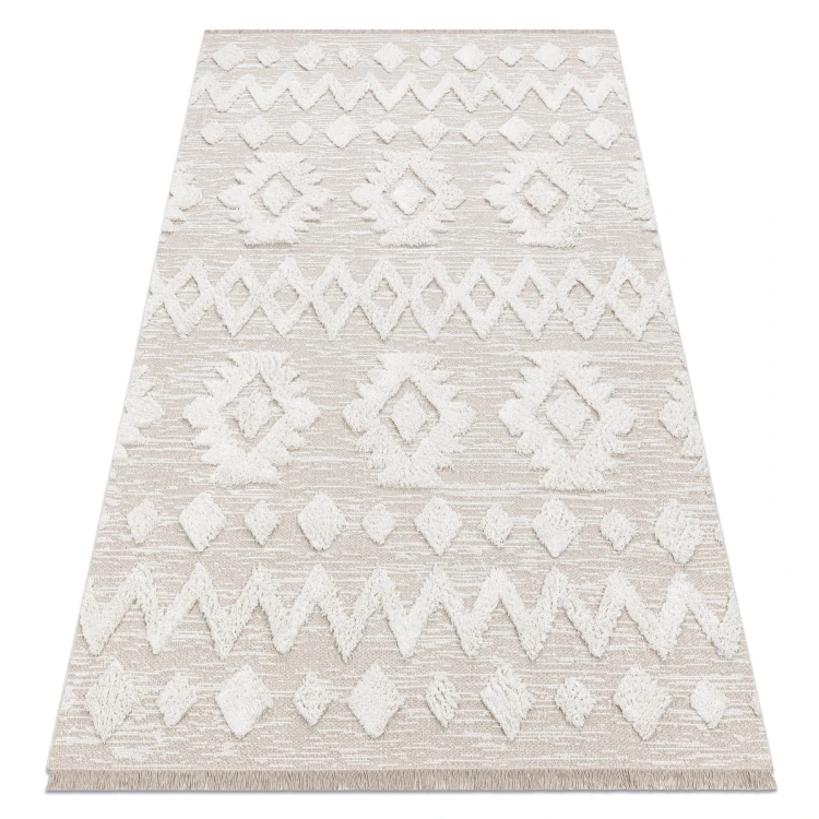 Beżowy dywan z geometrycznym wzorem rombów, który wprowadzi do salonu ciepły, naturalny akcent w klasycznym stylu.