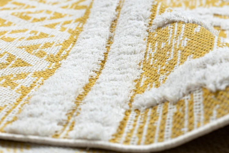 Żółto-kremowy dywan z bawełny z geometrycznym wzorem rombów, który ożywi salon ciepłym, słonecznym akcentem.