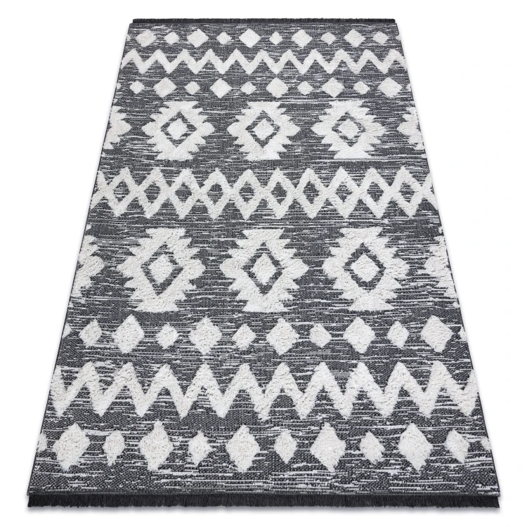 Szaro-kremowy dywan z geometrycznym wzorem zygzaka, który doda salonowi nowoczesny charakter i elegancko podkreśli strefę wypoczynku.