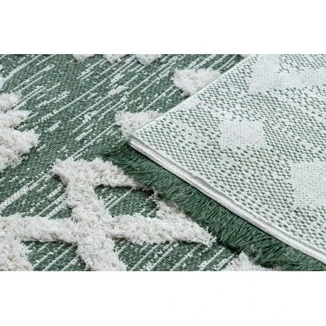 Dywan w odcieniu zieleni, odporny na warunki atmosferyczne, idealny na taras i balkon.