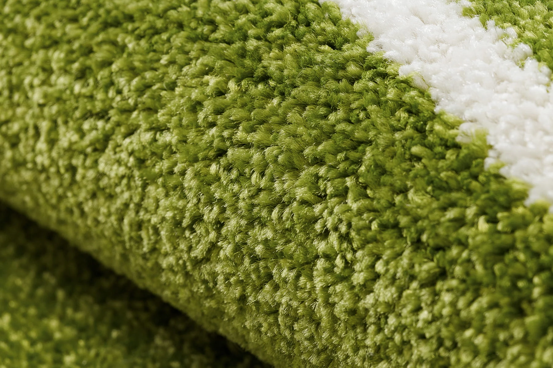 Zielony dywan z motywem boiska piłkarskiego, który zamieni pokój dziecka w miejsce pełne sportowych przygód i zabawy.