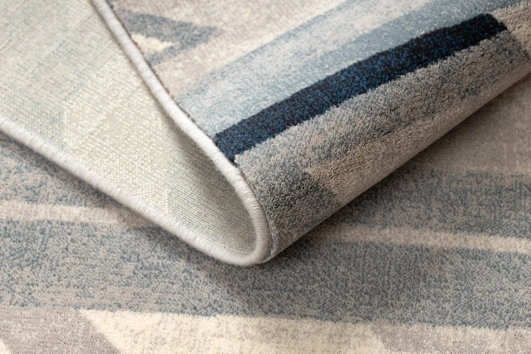 Beżowy dywan z abstrakcyjnym wzorem, który doskonale wypełni korytarz, nadając mu elegancki i stonowany charakter.