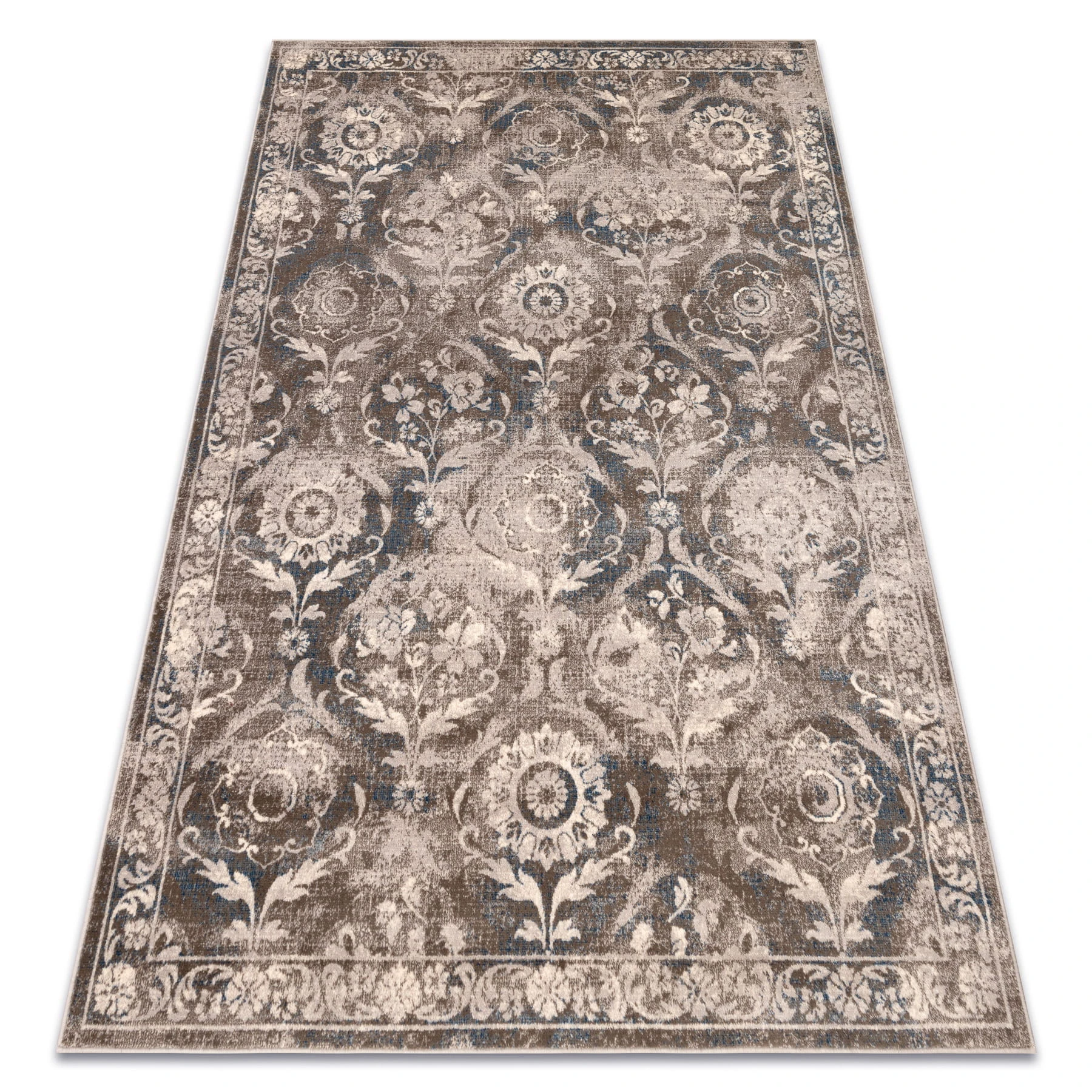Beżowy dywan z abstrakcyjnym ornamentem, który doskonale wpisze się w salon, dodając wnętrzu elegancji i ciepła.